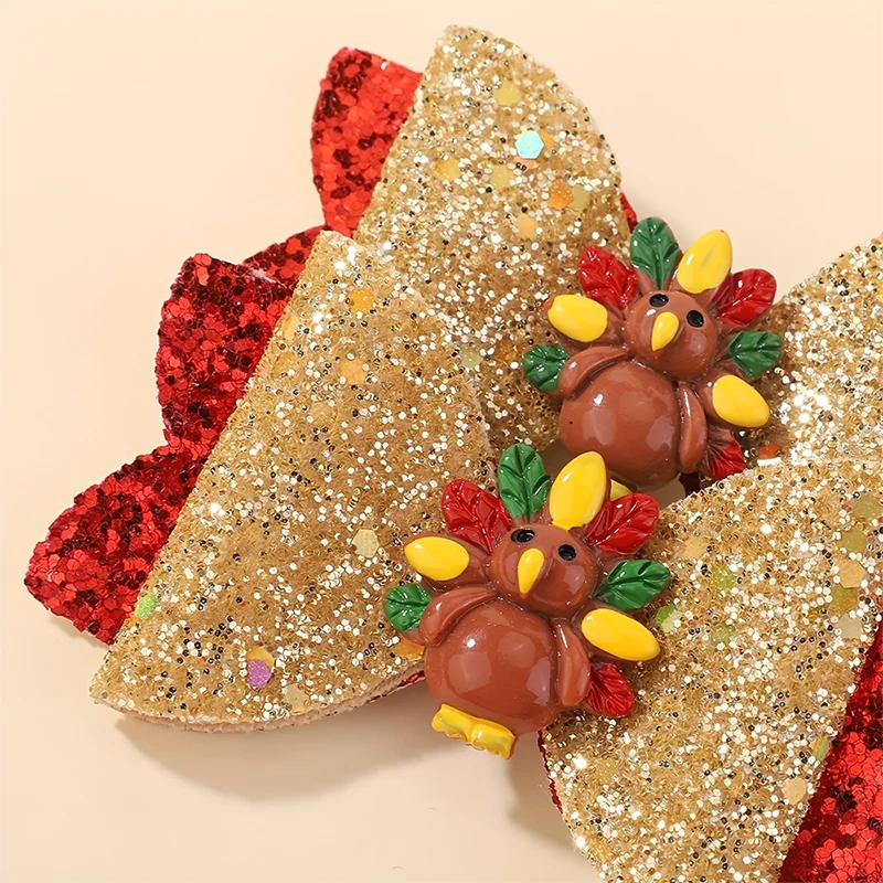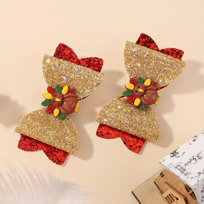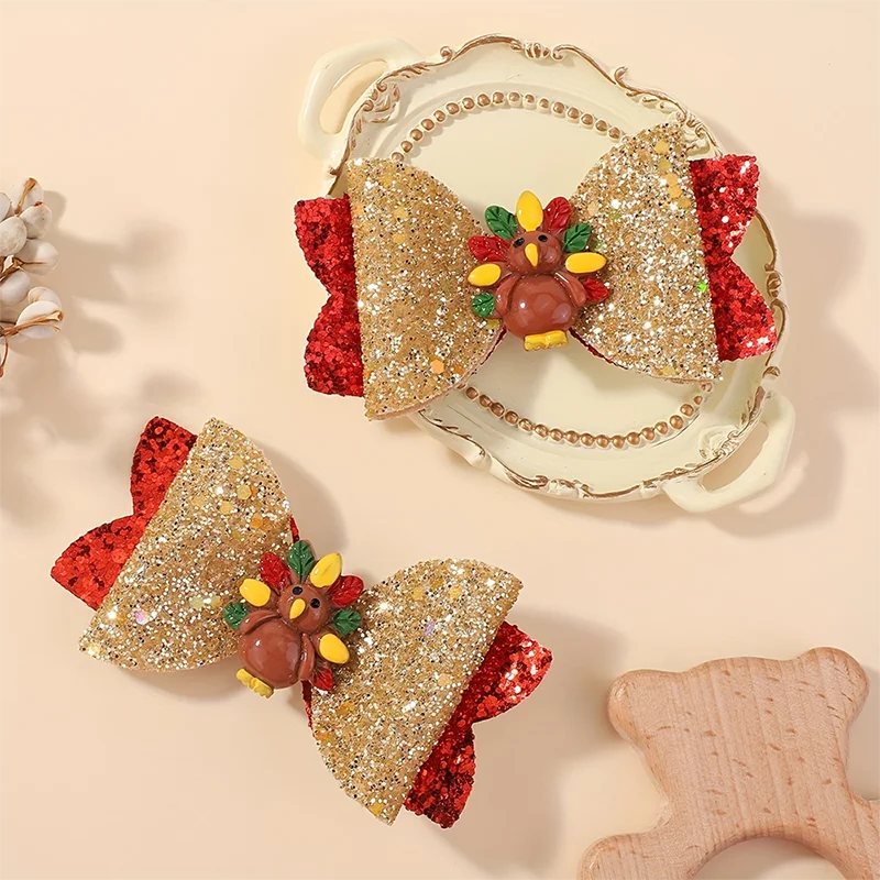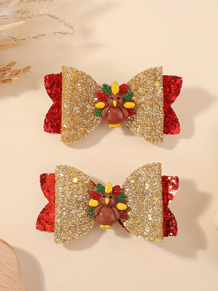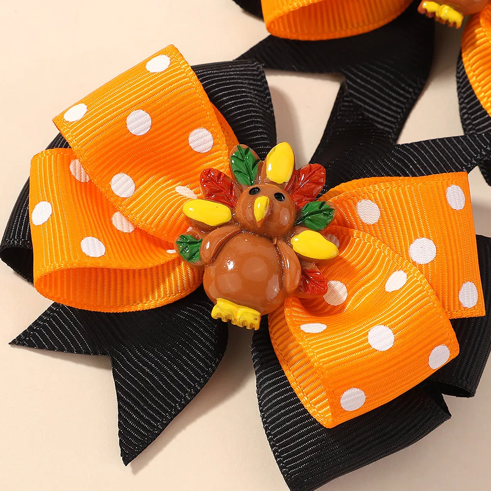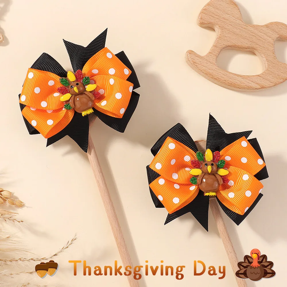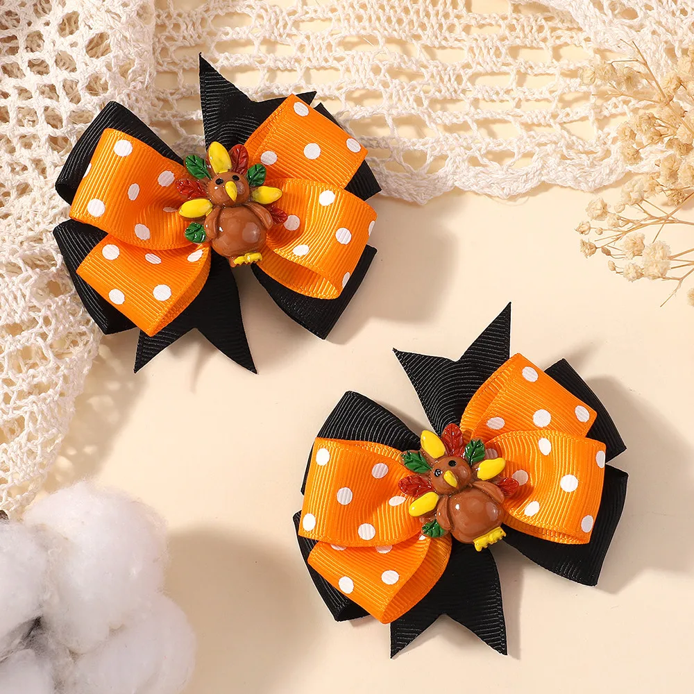 RIBBON BOWS 2Pcs Thanksgiving Day Decoration Bow Hairpin for Kids Girl Ghost Pumpkin Bat Hair Clips Party Hair Accessories Gifts
