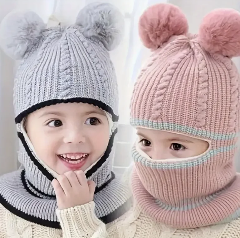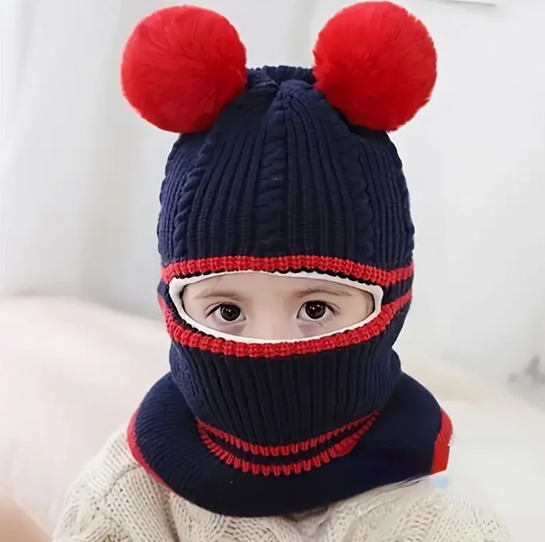 Winter Knit Cap, Scarf And Mask Cap, Earmuffs Windproof Ear Protection, Hot Lining, Suitable for Boys And Girls